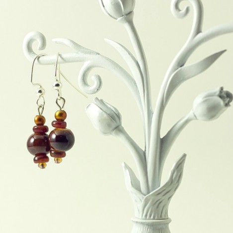 Dangle Bead Earrings- Brownie