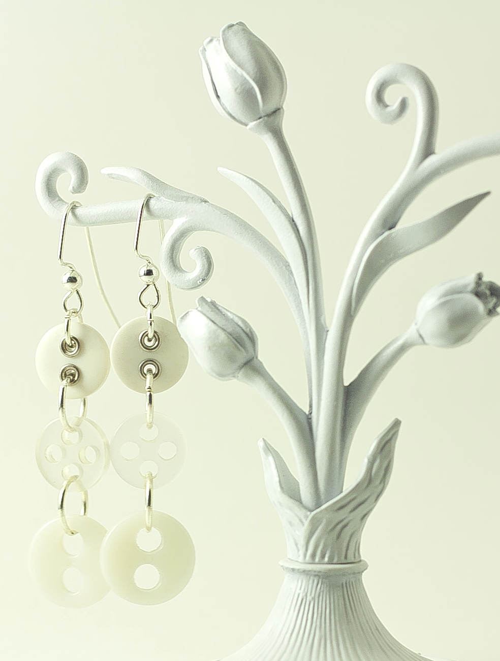 Dangle Button Earrings – Clear White Multi
